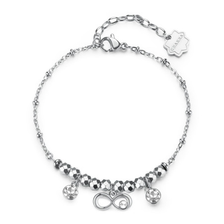 Descrizione: Bracciale Chakra in acciaio 316L, con infinito e cristalli