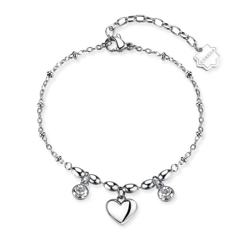 Descrizione: Bracciale Chakra in acciaio 316L, con cuore e cristalli