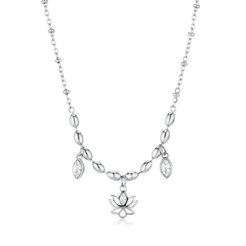 Descrizione: Collana Chakra in acciaio 316L, con fiore di loto e cristalli