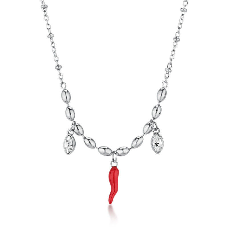 Descrizione: Collana Chakra in acciaio 316L, con cornetto smaltato e cristalli