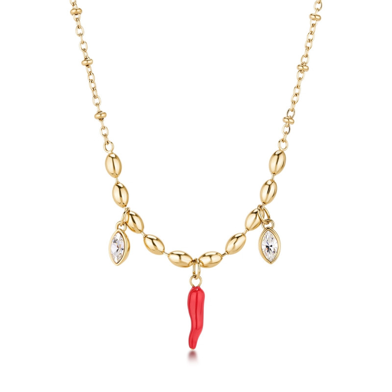 Descrizione: Collana Chakra in acciaio 316L, con cornetto smaltato e cristalli