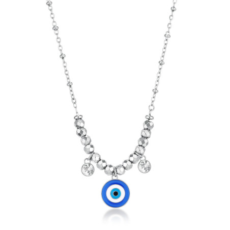 Descrizione: Collana Chakra in acciaio 316L, con occhio di Nazar e cristalli