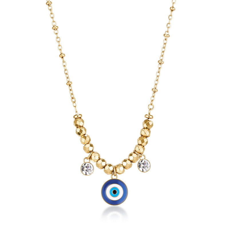 Descrizione: Collana Chakra in acciaio 316L, con occhio di Nazar e cristalli