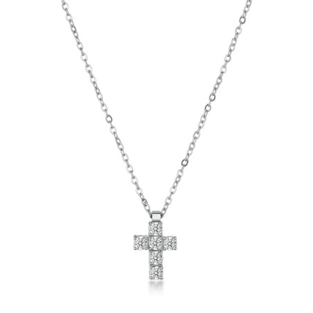 Descrizione: Collana Avantgarde in acciaio 316L, con pendente croce e cubic zirconia