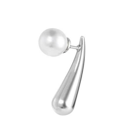 Descrizione: Mono orecchino in acciaio a lobo a forma di goccia, lunghezza 2,2 cm, con chiusura aggiuntiva perla rivestita a bottone di diametro 8 mm. Marlù logo laserato sul dietro. Materiali: acciaio, perla rivestita