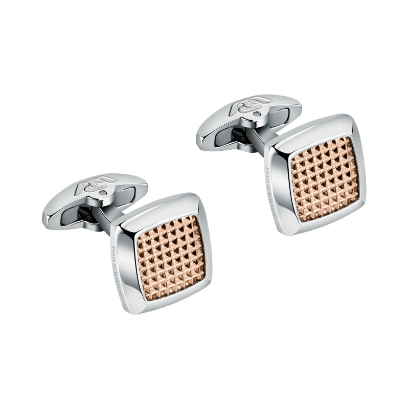Descrizione: gemelli in acciaio finitura in oro rosa