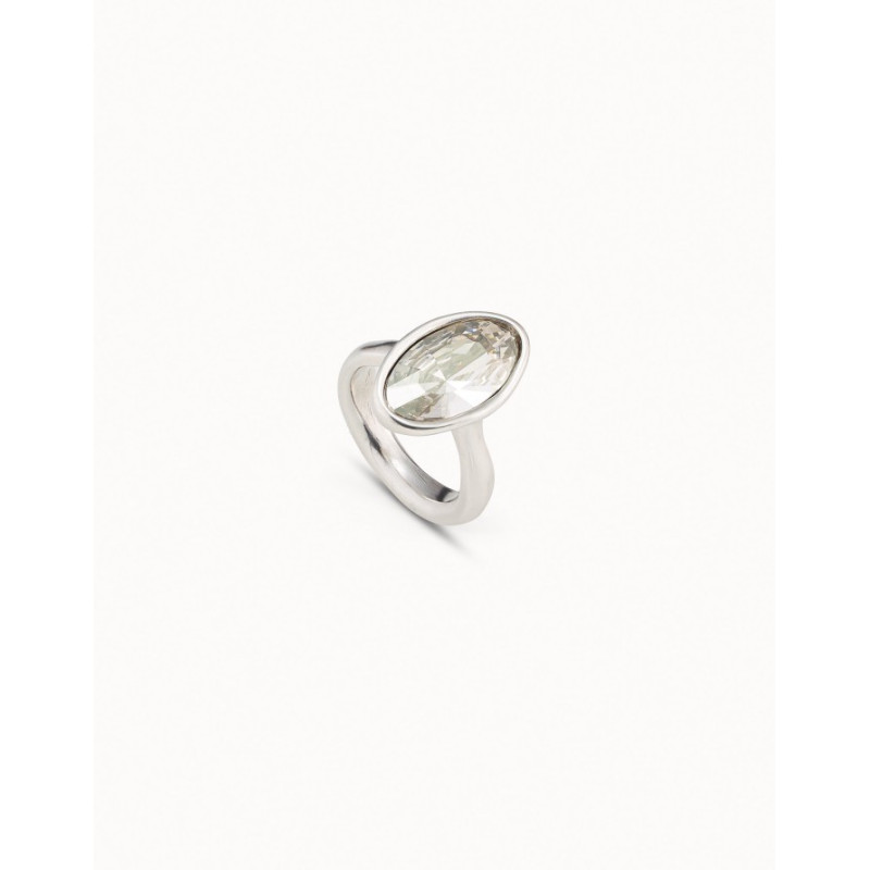 Descrizione: anello con cristallo sfaccettato bianco taglio ovale in lega di metalli rivestiti in argento 15 micron