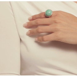 Descrizione: anello in lega di metallo argentata 15 micron con cristallo cabochon in vetro di Murano di colore verde acqua