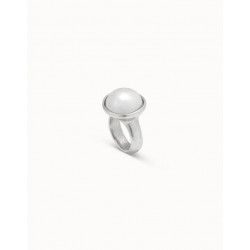 Descrizione: anello con perla cabochon in lega di metalli rivestiti in argento 15 micron