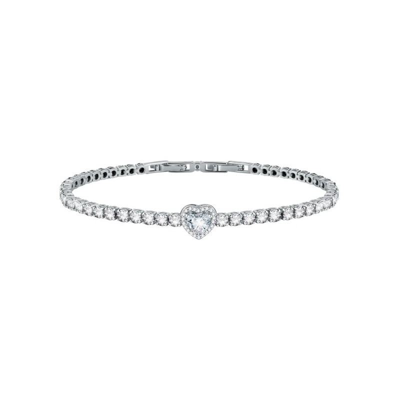 Descrizione: bracciale tennis con cuore centrale - argento 925 e zirconi - lunghezza regolabile 18 o 19 cm