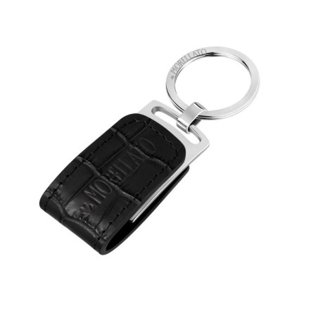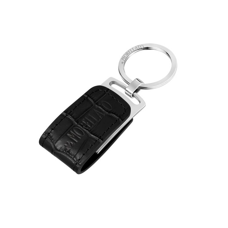 Descrizione: portachiave in acciaio e pelle stampa cocco e logo Morellato con chiavetta USB
