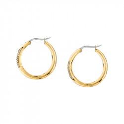 Descrizione: orecchini a cerchio dalle forme morbide e sinuose - Materiale: acciaio e cristalli