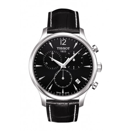 Descrizione: orologio cronografo movimento al quarzo, cassa in acciaio 316L e cinturino in pelle nero con quadrante nero