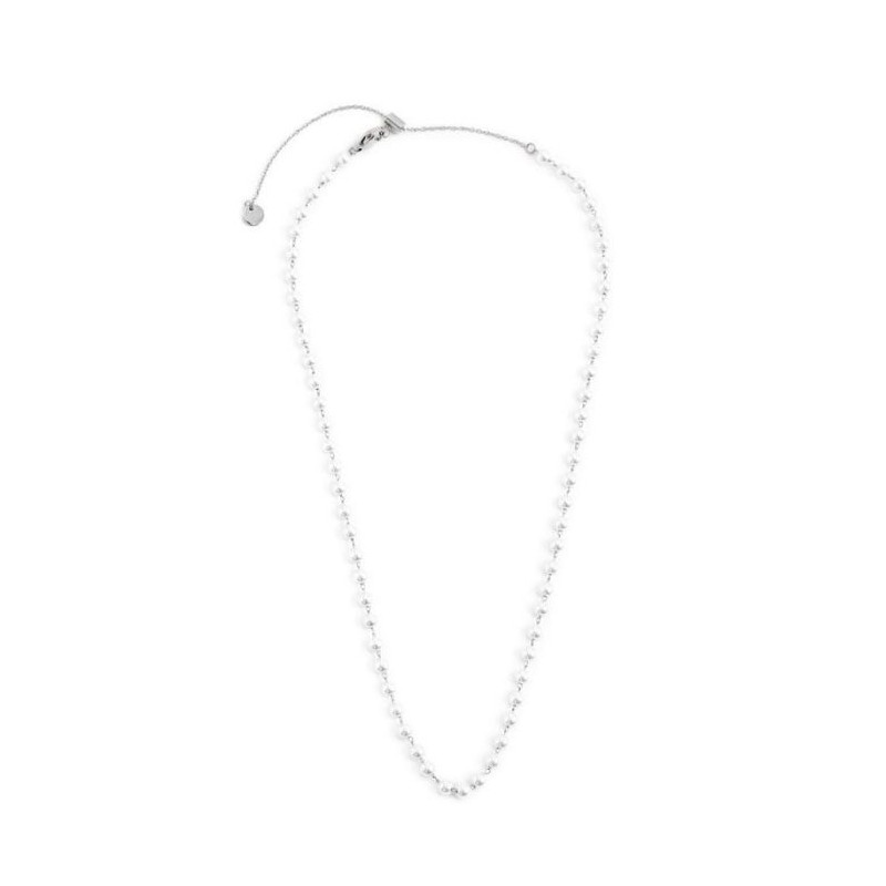 Descrizione: collana in acciaio con catena di perle con diametro 4.30 mm. Lunghezza totale 50 cm regolabile da 50 cm a 40 cm tramite cursore. Marlù logo tag presente all' estremità.