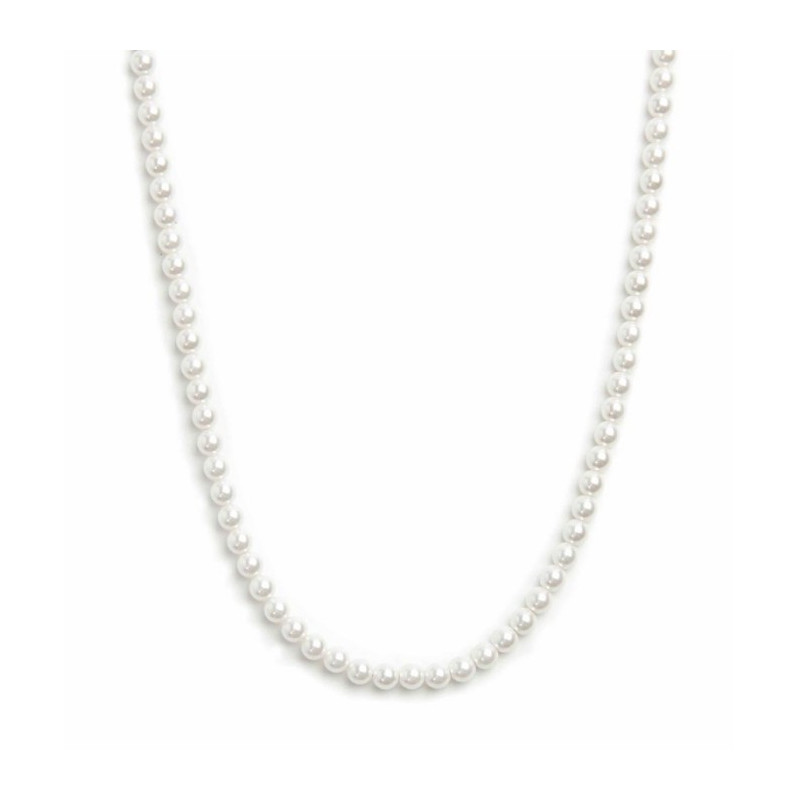 Descrizione: collier in acciaio con catena con perle a sfera bianche con diametro 6,30 mm. Lunghezza totale: 51 cm, regolabile tramite cursore da 51 a 41 cm. Tag logo Marlù presente all'estremità.