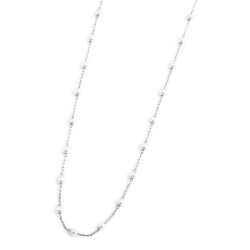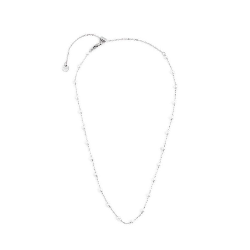 Descrizione: Girocollo in acciaio, catena con perle fi 3.30 mm. Lunghezza totale 44 cm regolabile da 44 cm a 34 cm tramite cursore. Marlù logo tag presente all' estremità.