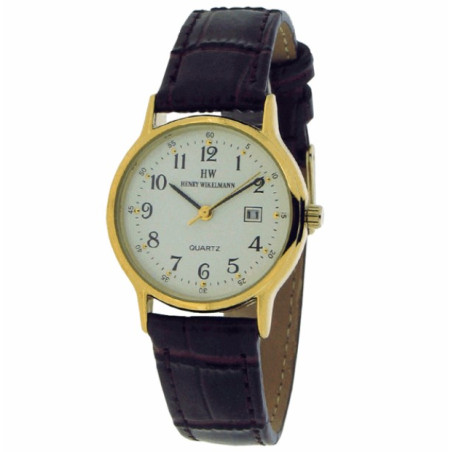 Descrizione: orologio cassa metallo PVD oro - movimento al quarzo hi-tech - corona impermeabile - cinturino vera pelle