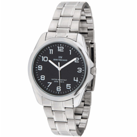 Descrizione: orologio cassa metallo con trattamento palladio bracciale in acciaio anallergico - movimento al quarzo hi-tech - corona impermeabile Dimensione cassa: 41 mm Chiusura: a scatto con dispositivo di sicurezza Funzioni: ore, minuti e secondi Vetro: minerale Impermeabilità: 3 ATM Genere: uomo Packaging: originale Henry Wikelmann
