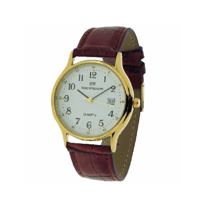 Descrizione: orologio cassa metallo con trattamento PVD oro - movimento al quarzo hi-tech - corona impermeabile - cinturino vera pelle