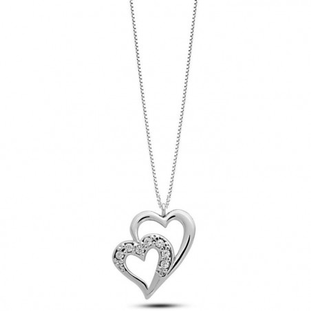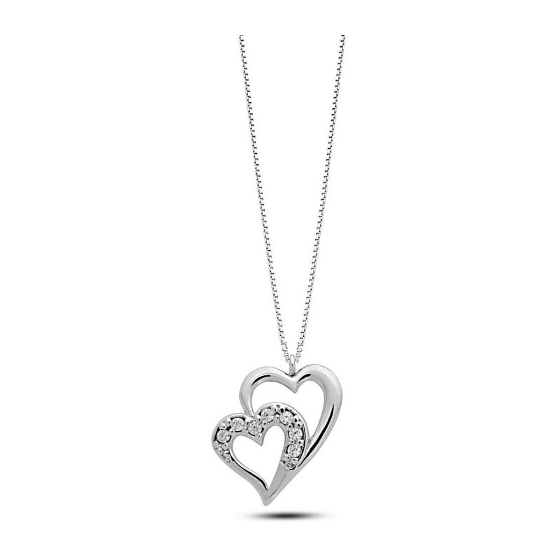 Descrizione: girocollo maglia veneta; charm doppio cuore; oro bianco 18 carati - Au750