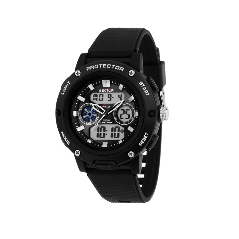 Descrizione: orologio cassa in resina e cinturino in silicone; movimento quarzo hi-tech con affissione analogica-digitale