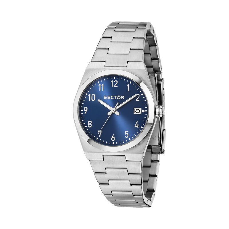 Descrizione: orologio fi 34mm -3 lancette e data. Vetro minerale. Cassa e bracciale in acciaio. Water resistant fino a 5 ATM