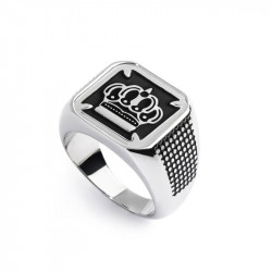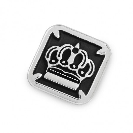 Descrizione: Piastrina quadrata in acciaio per anello, con una corona su black oil opaco.