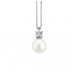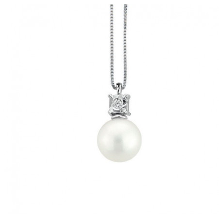 Descrizione: girocollo in oro 18k (au750) maglia veneziana con perla qualità fresh water e diamante naturale taglio brillante colore G/H purezza SI ct 0,01 - Lunghezza 42 cm
