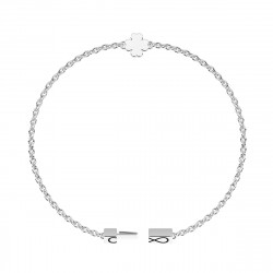 Descrizione: bracciale in acciaio 316L maglia forzatina con elemento quadrifoglio al centro. Dimensioni: maglia 1,5 mm, quadrifoglio 5,3x5,3 mm