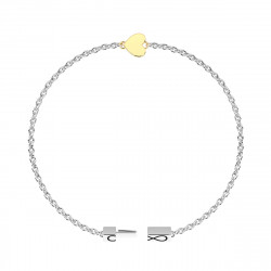 Descrizione: bracciale in acciaio 316L maglia forzatina con elemento cuore in oro 9kt (au375/1000) al centro. Dimensioni: maglia 1,5 mm, cuore 4,9x5,3 mm