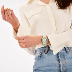 Descrizione: Hero.DOT Bezel è il perfetto equilibrio tra innovazione estetica e carattere contemporaneo. Il suo tratto distintivo? La lunetta in metallo con inserto in resina traslucida, un accostamento che aggiunge profondità e luminosità all’orologio, per un look sofisticato e moderno. L’effetto sketch sul quadrante ne esalta il design, con indici e dettagli outline in nero ispirati al tratto spontaneo di un disegno a mano libera. Un omaggio all’arte che gioca con la percezione visiva, avvicinandosi all’estetica trompe-l’œil, dove realtà e illusione si fondono in un equilibrio perfetto. Il cinturino in silicone eco-friendly, garantisce una vestibilità morbida e avvolgente, unendo comfort e resistenza. Il tocco finale? La corona nera e la chiusura DOT in acciaio in una nuova finitura nera matt, per un dettaglio deciso che sottolinea il carattere audace della collezione.