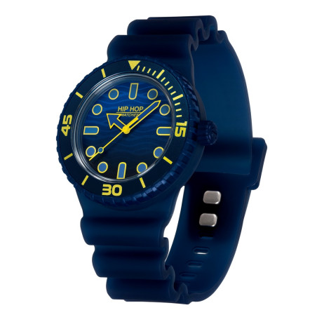 Descrizione: L’orologio Hip Hop Master è un mix perfetto di stile e praticità. Il quadrante è illuminato dai numeri e sfere con luminous bianco a contrasto con il colore della cassa e della lunetta girevole unidirezionale. Il morbido cinturino in silicone ha la chiusura .DOT e ha impresso un dettaglio speciale: la Wind Speed, scala di conversione da metri al secondo a nodi per indicare la velocità del vento. L’orologio è venduto con un secondo cinturino intercambiabile in silicone.