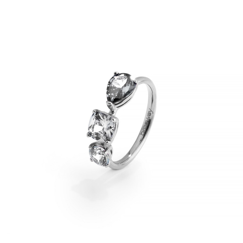 Descrizione: anello in acciaio 316L, con cubic zirconia square, cushion e pear