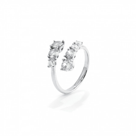 Descrizione: anello contrariè in acciaio 316L, con cubic zirconia round e cushion