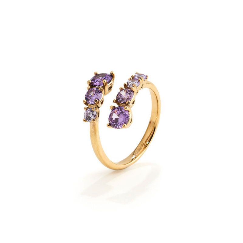 Descrizione: anello contrariè in acciaio 316L, con cubic zirconia round e cushion