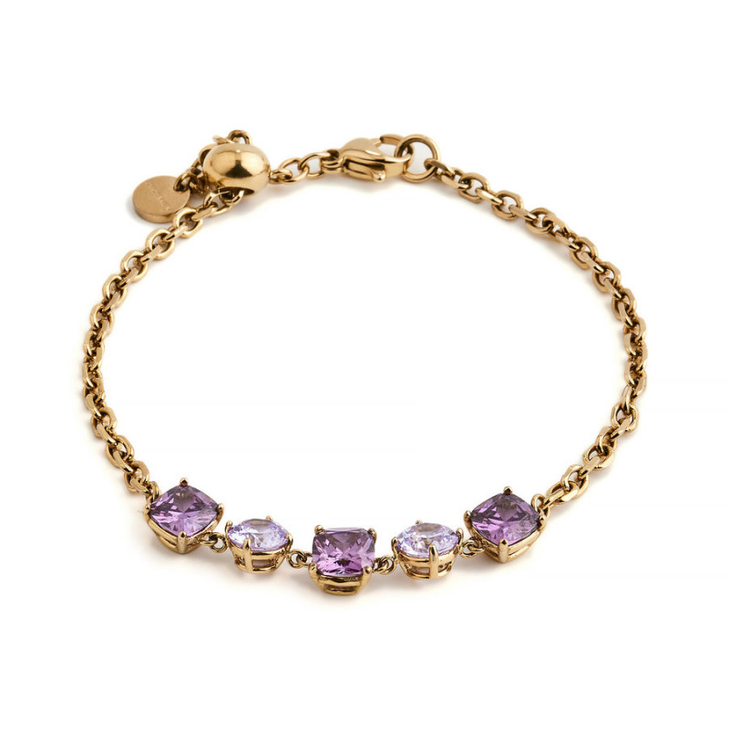 Descrizione: bracciale maglia rolò in acciaio 316L, con cubic zirconia round e cushion