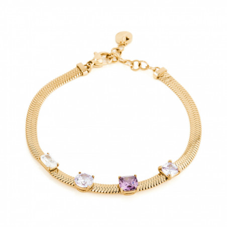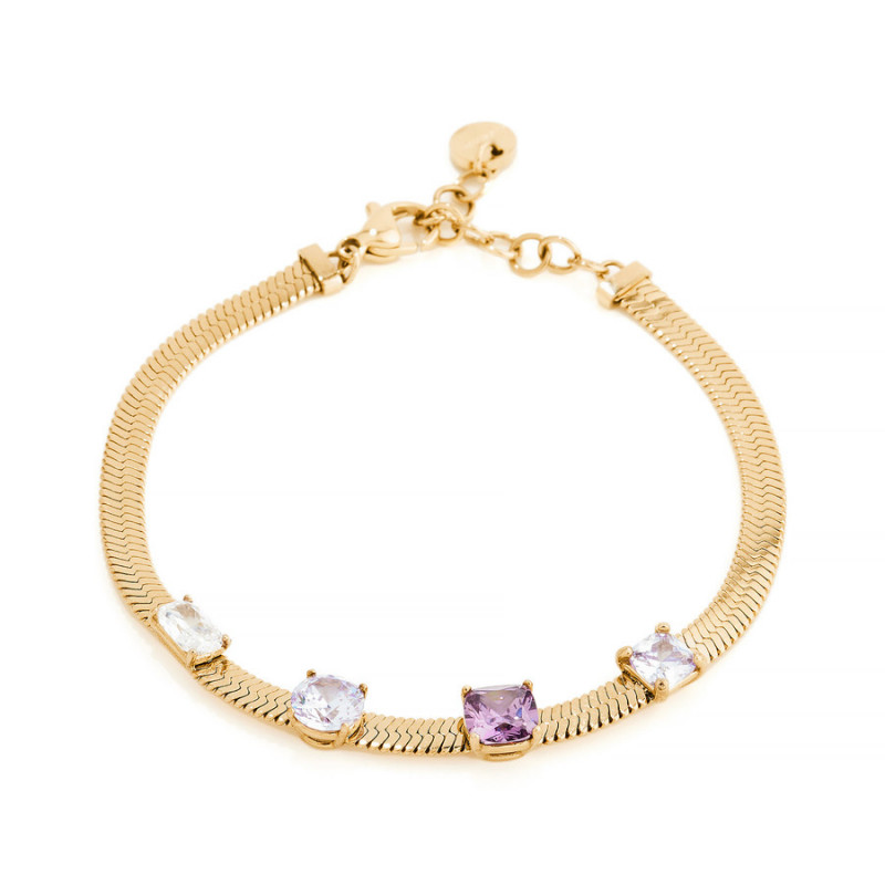Descrizione: bracciale maglia snake in acciaio 316L, con cubic zirconia round, cushion, square e baguette