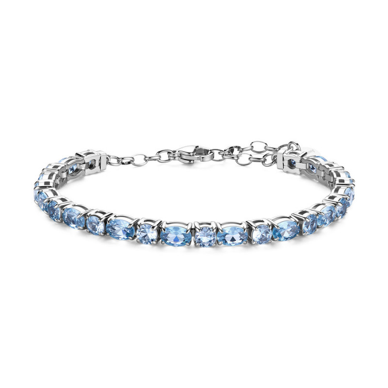 Descrizione: bracciale tennis in acciaio 316L, con cubic cubic zirconia round, cushion, square
