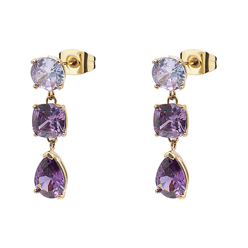 Descrizione: orecchini pendenti in acciaio 316L, con cubic zirconia round, cushion e pear