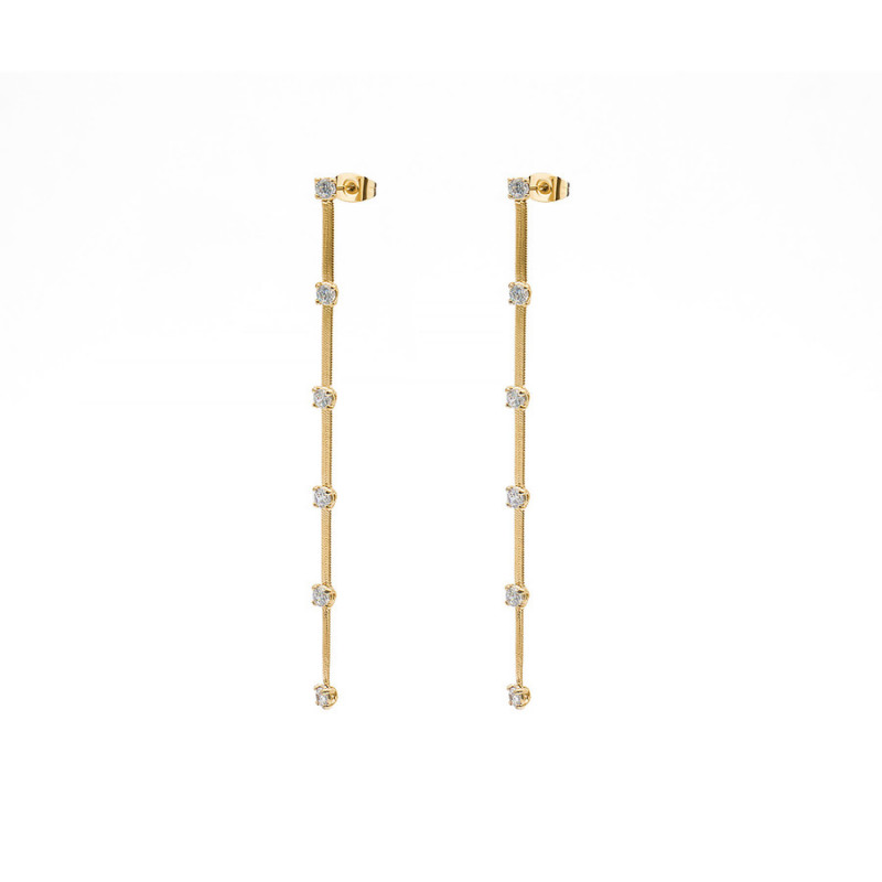 Descrizione: orecchini pendenti in acciaio 316L, con cubic zirconia