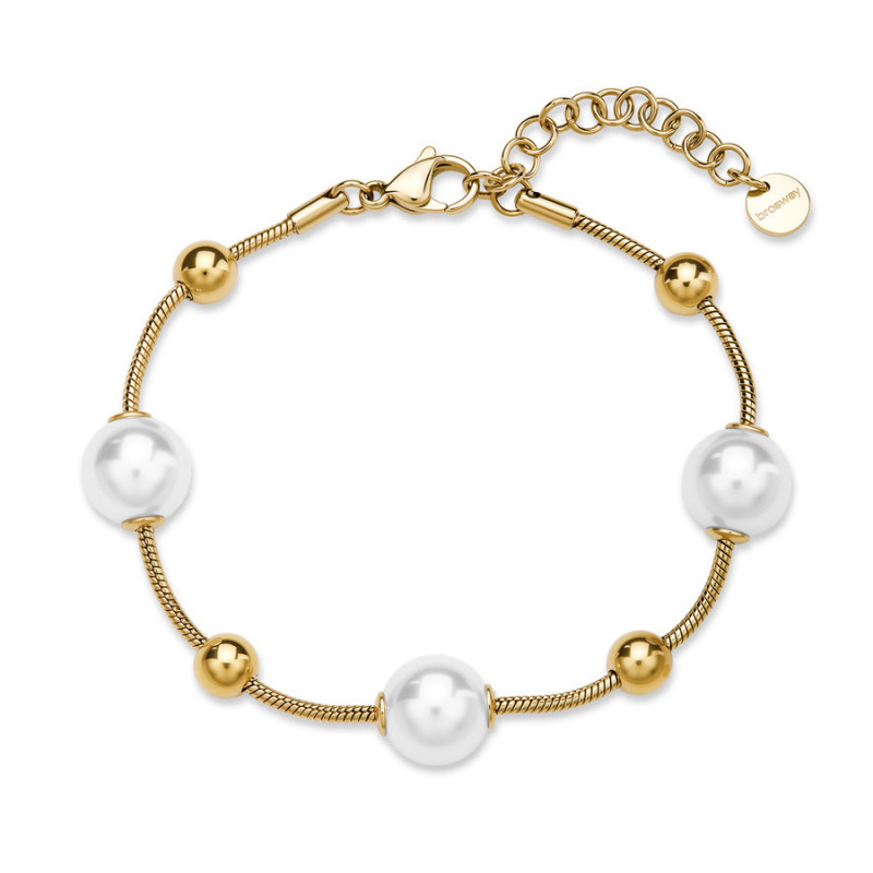 Descrizione: Bracciale in acciaio 316L, con sfere e perle di conchiglia