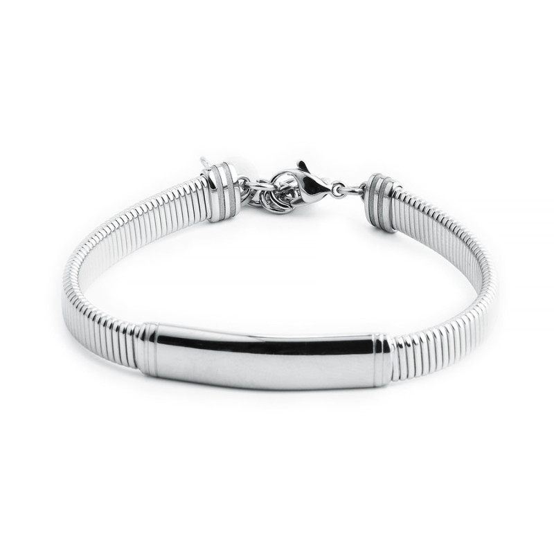 Descrizione: bracciale in acciaio 316L - maglia tubogas e targhetta personalizzabile