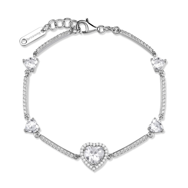 Descrizione: Bracciale in argento 925/1000 rodiato, con cuori e cubic zirconia