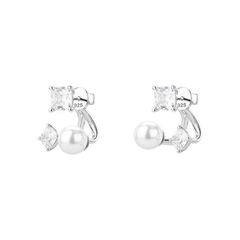 Descrizione: orecchini a lobo in argento 925/1000 rodiato, con perle e cubic zirconia white