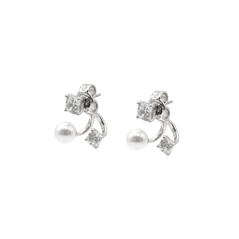 Descrizione: orecchini a lobo in argento 925/1000 rodiato, con perle e cubic zirconia white