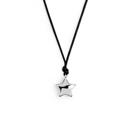Descrizione: Collier con cordino in colore nero o in colore rosso con stella grande pendente in acciaio o acciaio pvd oro. Vicino alla chiusura tag ovale con inciso da un lato il logo Marlù, dall'altro la scritta "FOLLOW YOUR" e una stella. Regolabile fino a 50 cm.