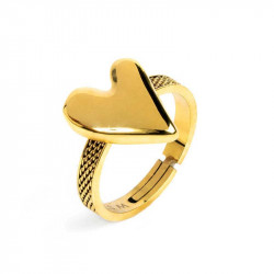 Descrizione: Anello in acciaio o acciaio pvd oro a fascetta con trama a catena mesh, al centro cuore irregolare con misura 1,5*1,2 cm.