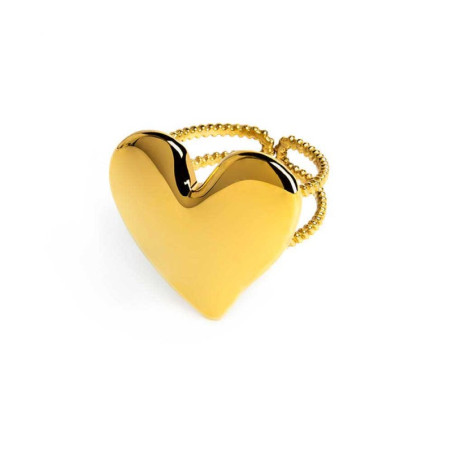Descrizione: Anello in acciaio o acciaio pvd oro a doppia fascia, al centro cuore irregolare martellato con misura 2,2*2,2 cm.