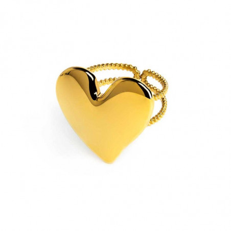 Descrizione: Anello in acciaio o acciaio pvd oro a doppia fascia, al centro cuore irregolare martellato con misura 2,2*2,2 cm.