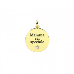 Descrizione: Ciondolo in acciaio 316L satinato con cristallo. Scritta: Mamma sei speciale… famiglia. Dimensioni: ciondolo fi 15 mm, pietra fi 1.25 mm